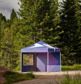 Mit dem Sublimationsdruck können detailgetreue Fotos und großflächige Motive in hoher Qualität auf Dach und Seitenwände gedruckt werden. Für optimale Ergebnisse sollte das Fotoformat entweder 1 zu 1 mit 100 dpi oder 1 zu 100 mit 300 dpi angelegt sein.