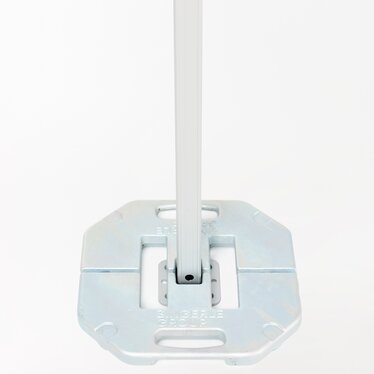 Ideal für feste Untergründe wie Beton oder Asphalt. Besonders geeignet für mobile Einsätze. Die Bodenplatten wurden in Windkanaltests geprüft und sorgen für zuverlässige Stabilität. -